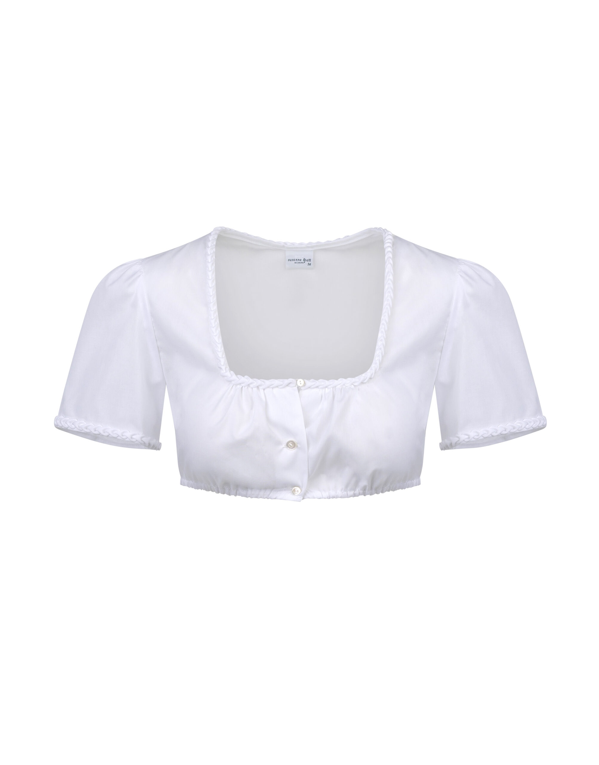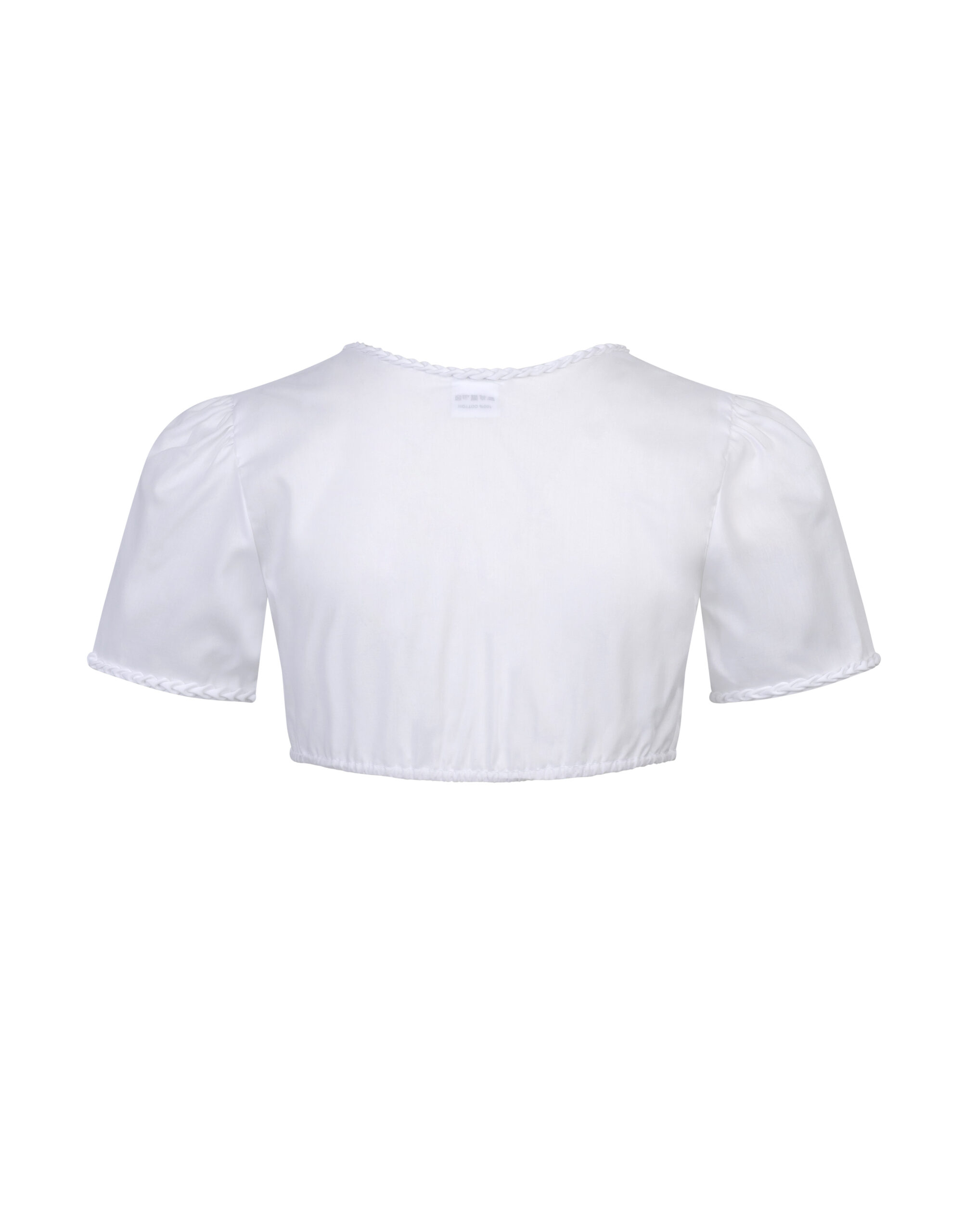 Schlichte Baumwollbluse mit Herzerlborte am Ausschnitt und Ärmeln.