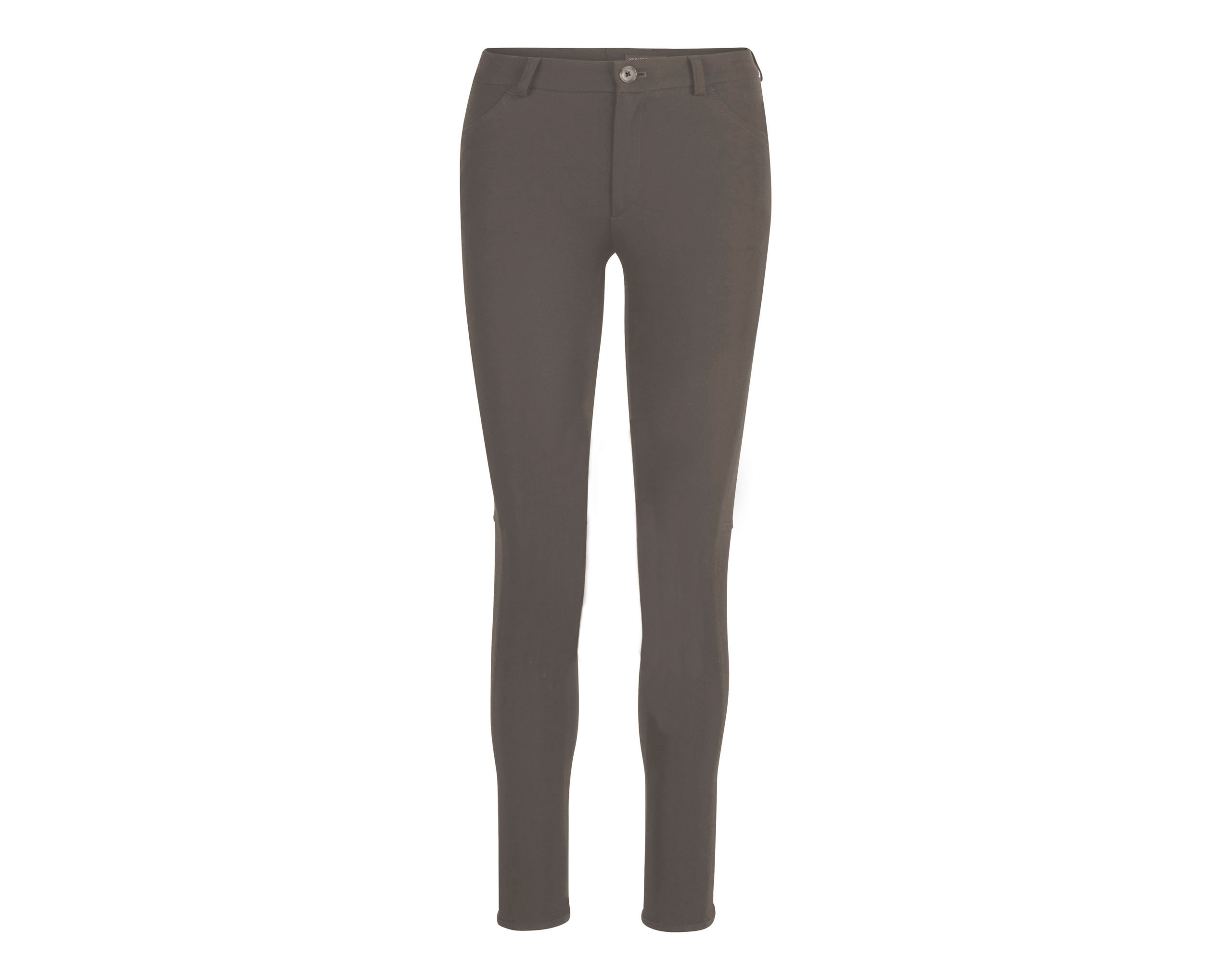 Stilvolle Susanne Spatt Reiterhose aus elastischer Baumwolle in der Farbe Taupe-Grau. Die schmal geschnittene Reiterhose schmeichelt der femininen Silhouette. Ein echter Hornknopf mit Kreuzstich angenäht rundet die Hose harmonisch ab.